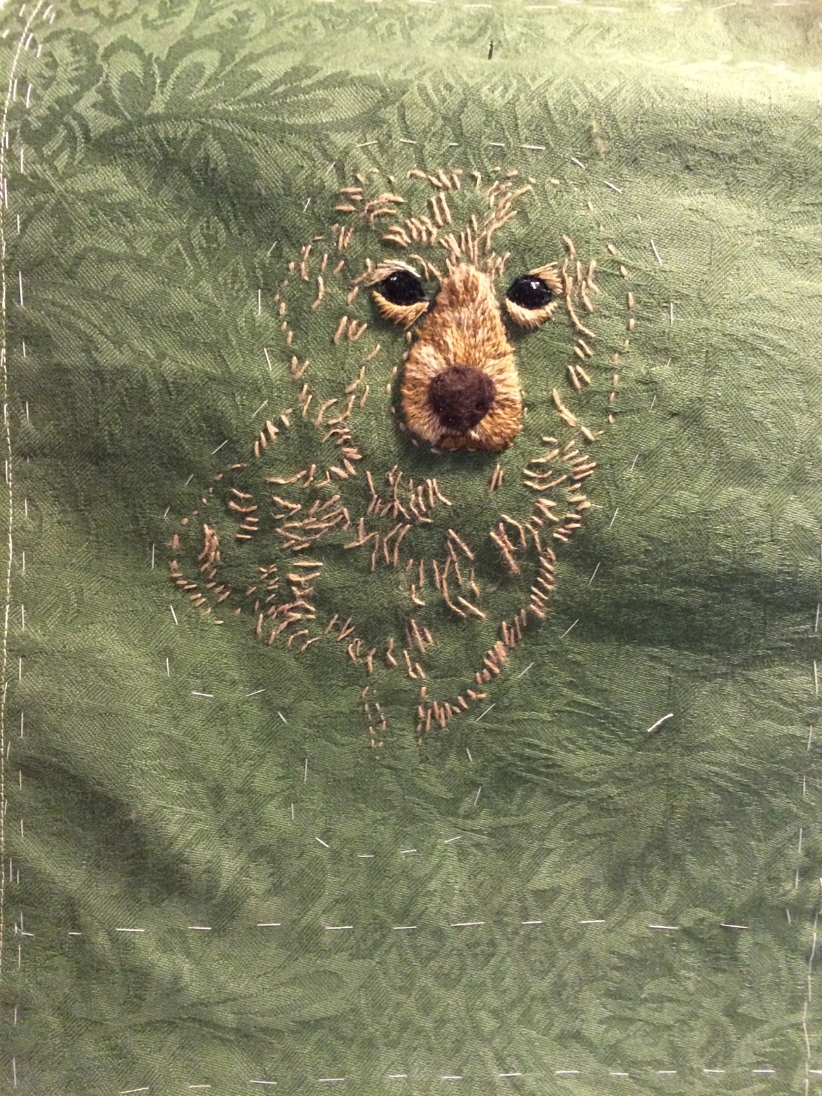 Now that the neck has been embroidered, the twists and turns of the fur are evident.